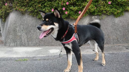 散歩中に大福まめが何か見つけました。