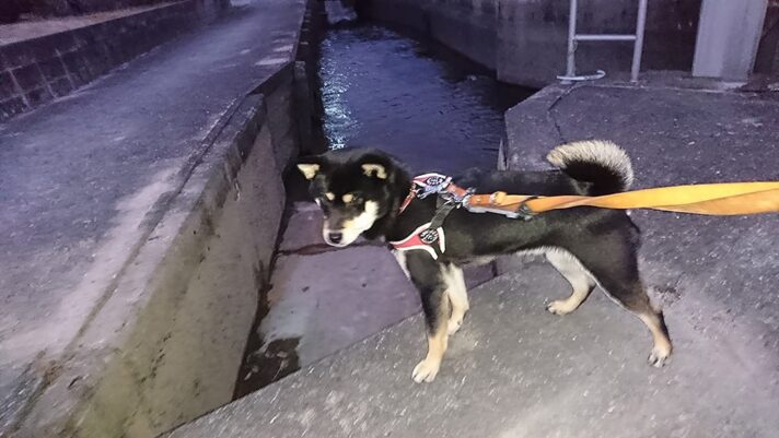 夜明け前に黒柴 大福まめの散歩が終了